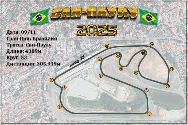 .content{ overflow: auto; position: relative; -webkit-box-sizing: border-box; -moz-box-sizing: border-box; box-sizing: border-box; } .flag { max-width: 35px; border-radius: 5px; } .points_head { background: #2196F3; color: #ffffff; font-size: 20px; font-weight: bold; padding: 5px 40px; } .points_body { color: #ffffff; font-size: 18px; font-family: Roboto, Helvetica, arial, sans-serif; padding: 5px 40px; line-height: 2; } .table-team td { background: rgba(8, 19, 39, 0.85); color: #fff; text-align: center; padding: 4px 10px 5px 10px; border-bottom: 1px solid #fff; border-right: 1px solid #5b5b5b; white-space: nowrap; -webkit-appearance: none; -webkit-text-size-adjust: none; font-family: Roboto, Helvetica, arial, sans-serif; font-size:16px } .table-team {width: 100%;} .table-team th { background-color: rgba(84, 97, 116, 0.8); color: #fff; font-size: 20px; padding: 0px 2px 5px; text-align: center; white-space: nowrap; border-right: 1px solid #5b5b5b; } .table-team tr { transition: 1s; } .table-team tr:hover { transform: scale(1.03); background:#fff000; cursor:pointer; } .reg { font-weight:bold; color:#fff000; } Round 6 Brazil, Interlagos Дата проведения: 9 Ноября 2025 Длина круга: 4309 м Количество кругов: 53 Общая дистанция: 305.879 Симулятор: Rfactor 2 Машины: Formula Hybrid-25 Трассы: Скачать Подать заявку Трансляция YouTube Комментаторы: Evgeniy DeadSoul
